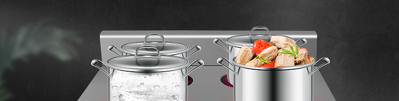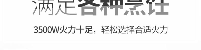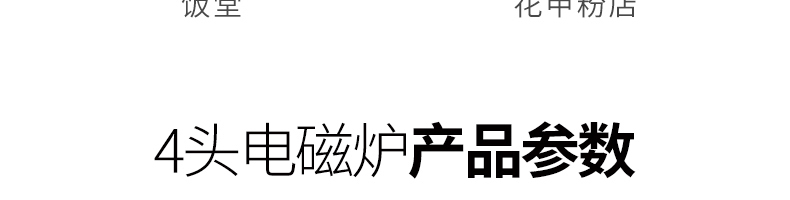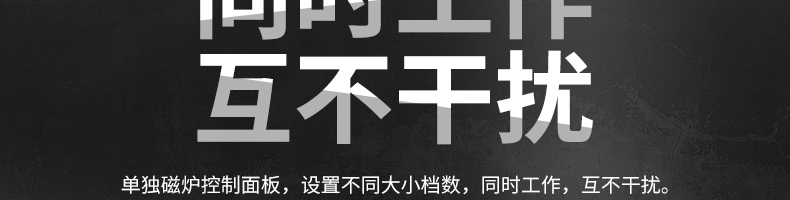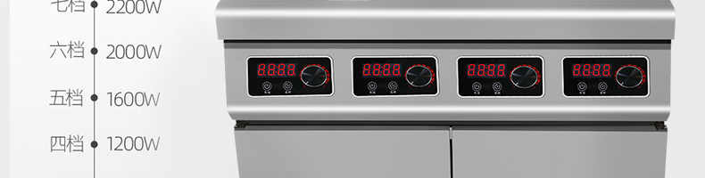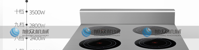 四頭柜式電磁爐,10檔調(diào)節(jié),滿(mǎn)足各種烹飪。3500W火力十足,輕松選擇合適火力。同時(shí)工作互不干擾單獨(dú)磁爐控制面板,設(shè)置不同大小檔數(shù),同時(shí)工作,互不干擾。