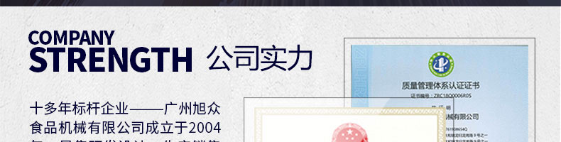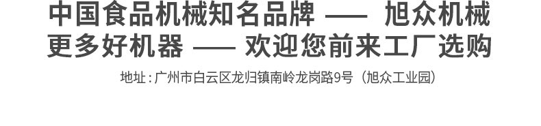 廣州旭眾食品機(jī)械有限公司是一家集科研開發(fā),生產(chǎn)設(shè)計(jì),營銷服務(wù)為一體的現(xiàn)代化生產(chǎn)企業(yè)。現(xiàn)代化生產(chǎn)車間,精湛制造技術(shù),所產(chǎn)機(jī)械歷經(jīng)市場(chǎng)重重考驗(yàn),不斷贏得海內(nèi)外客戶的贊譽(yù)。