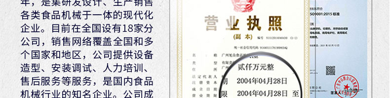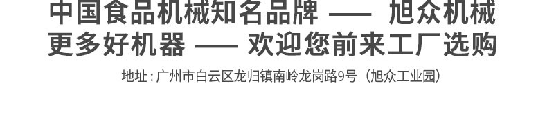 廣州旭眾食品機械有限公司是一家集科研開發(fā),生產(chǎn)設(shè)計,營銷服務(wù)為一體的現(xiàn)代化生產(chǎn)企業(yè)。現(xiàn)代化生產(chǎn)車間,精湛制造技術(shù),所產(chǎn)機械歷經(jīng)市場重重考驗,不斷贏得海內(nèi)外客戶的贊譽。