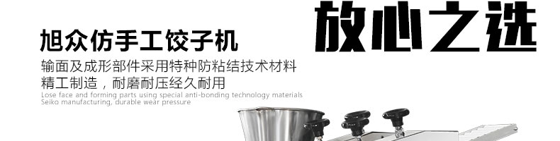 JGB-180餃子機,先進的自動餃子生產(chǎn)設(shè)備,包括主動壓皮部分、自動供餡部分、自動包合部分、自動成品輸送部分,并且只要更換模具,就可制鍋貼等食品。適合食品速凍廠、飯店、廠礦學(xué)校食堂等制作包餡面制品單位使用。