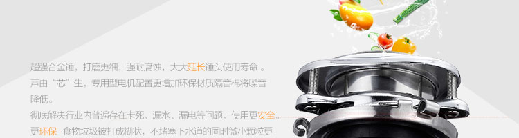 DCLQ38-廚房垃圾處理器,該機(jī)擁有獨(dú)特的粉碎功能,使所有垃圾研磨吸毒真正低于3毫米,用戶不用為管道堵塞而煩惱,粉碎后粗、細(xì)兩種垃圾通過(guò)濾孔自動(dòng)分離,成漿狀的細(xì)垃圾隨水流流入管道,粗的垃圾會(huì)稍停留在研磨倉(cāng)繼續(xù)粉碎,形成粉末狀后,再隨水流流入管道,客戶可以放心使用。