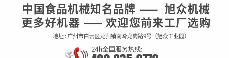 廣州旭眾食品機械有限公司是一家集科研開發(fā),生產(chǎn)設(shè)計,營銷服務(wù)為一體的現(xiàn)代化生產(chǎn)企業(yè)?,F(xiàn)代化生產(chǎn)車間,精湛制造技術(shù),所產(chǎn)機械歷經(jīng)市場重重考驗,不斷贏得海內(nèi)外客戶的贊譽。