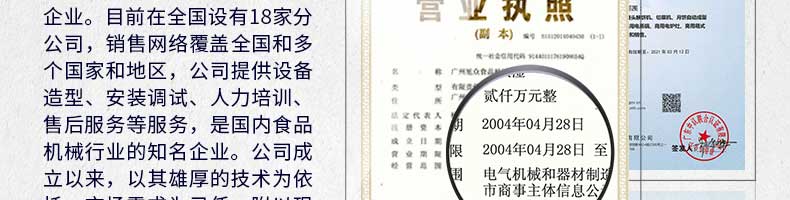 廣州旭眾食品機(jī)械有限公司是一家集科研開(kāi)發(fā),生產(chǎn)設(shè)計(jì),營(yíng)銷(xiāo)服務(wù)為一體的現(xiàn)代化生產(chǎn)企業(yè)?,F(xiàn)代化生產(chǎn)車(chē)間,精湛制造技術(shù),所產(chǎn)機(jī)械歷經(jīng)市場(chǎng)重重考驗(yàn),不斷贏得海內(nèi)外客戶的贊譽(yù)。