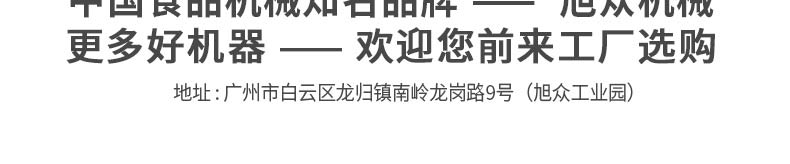 廣州旭眾食品機械有限公司是一家集科研開發(fā),生產(chǎn)設(shè)計,營銷服務(wù)為一體的現(xiàn)代化生產(chǎn)企業(yè)?,F(xiàn)代化生產(chǎn)車間,精湛制造技術(shù),所產(chǎn)機械歷經(jīng)市場重重考驗,不斷贏得海內(nèi)外客戶的贊譽。