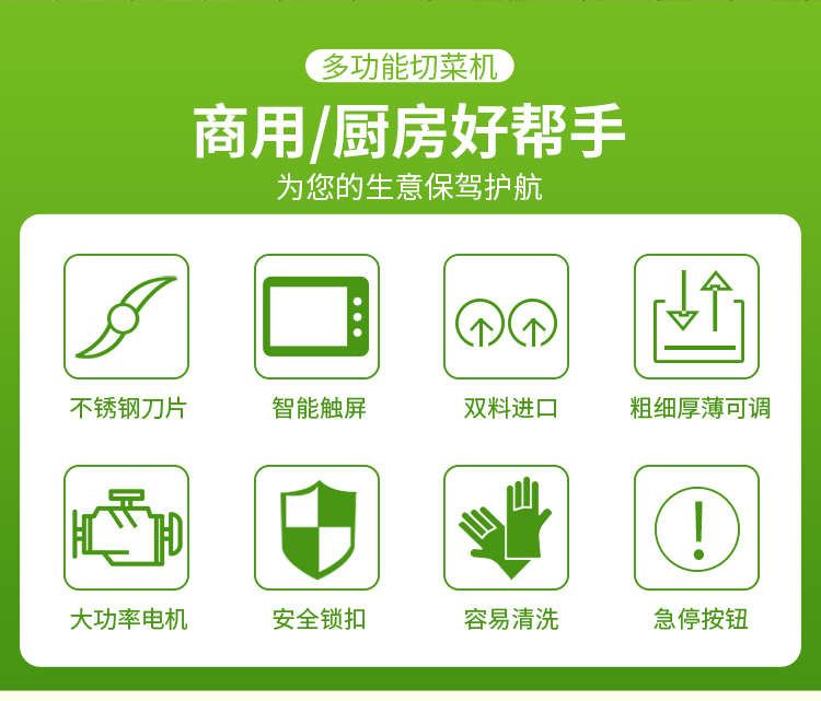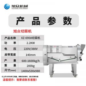 XZ-690A型多功能切菜機(jī),工作效率高,幫你省人工費(fèi)。1小時(shí)可切600kg-1600kg/h,1臺(tái)機(jī)器等于多名廚師同時(shí)為您工作。一機(jī)多用,可切瓜果、蔬菜、藥材,刀片可進(jìn)行更換,設(shè)計(jì)周到,結(jié)構(gòu)合理,簡(jiǎn)單輕松應(yīng)對(duì)。