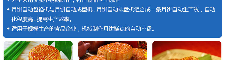 SZ-08型月餅自動(dòng)排盤機(jī),可同于制作各種月餅。適用于蛋糕房、休閑食品廠、食品加工產(chǎn)、面包房、月餅加工廠、超市、學(xué)校、食堂等各種工作場(chǎng)所??蓾M足不同客戶群體。免費(fèi)提供工藝技術(shù)。
