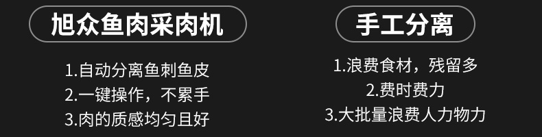 XZC-160型魚(yú)肉采肉機(jī),去刺干凈、高效出肉。加工魚(yú)肉去刺、蟹蝦去殼等。手工去魚(yú)刺太累了,傳統(tǒng)的魚(yú)糜加工中,手工去魚(yú)皮魚(yú)刺,既費(fèi)時(shí)又費(fèi)力不小心就會(huì)傷到手。