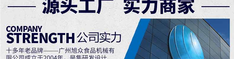 廣州旭眾食品機(jī)械有限公司是一家集科研開(kāi)發(fā),生產(chǎn)設(shè)計(jì),營(yíng)銷(xiāo)服務(wù)為一體的現(xiàn)代化生產(chǎn)企業(yè)?,F(xiàn)代化生產(chǎn)車(chē)間,精湛制造技術(shù),所產(chǎn)機(jī)械歷經(jīng)市場(chǎng)重重考驗(yàn),不斷贏得海內(nèi)外客戶的贊譽(yù)。